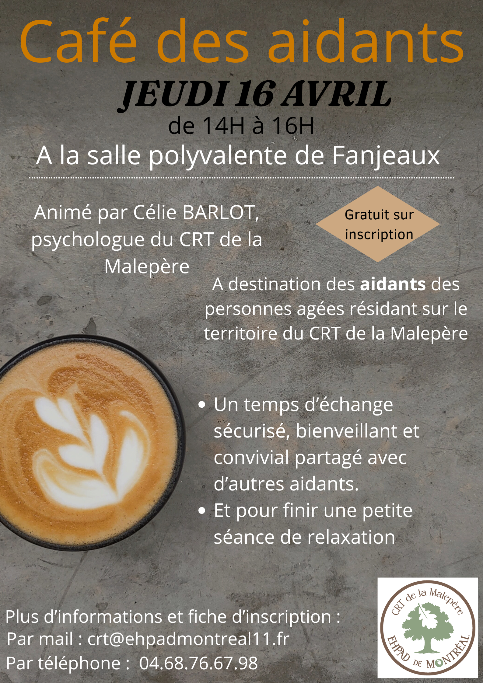 Le Café des Aidants se tiendra le 16 avril de 14h à 16h, à la salle polyvalente de Fanjeaux.