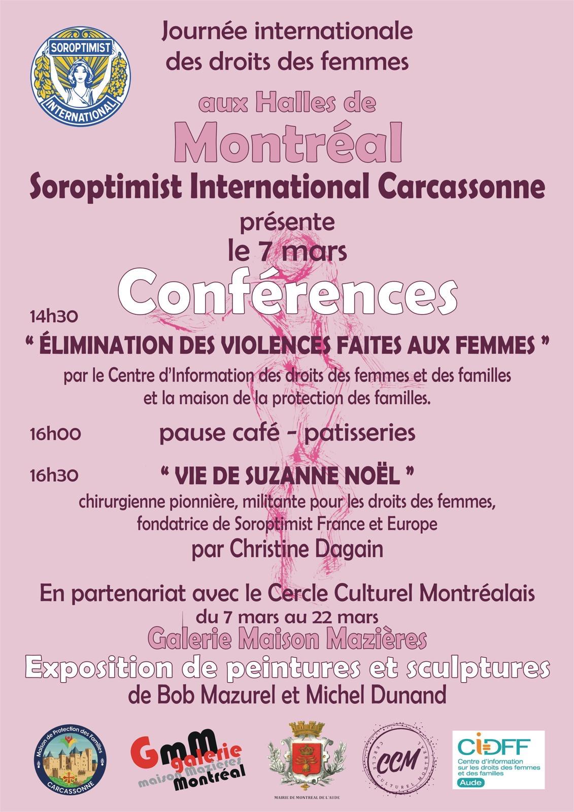 À l’occasion de la Journée internationale des droits des femmes, le Soroptimist International Carcassonne organise un après-midi de conférences le 7 mars aux Halles de Montréal.