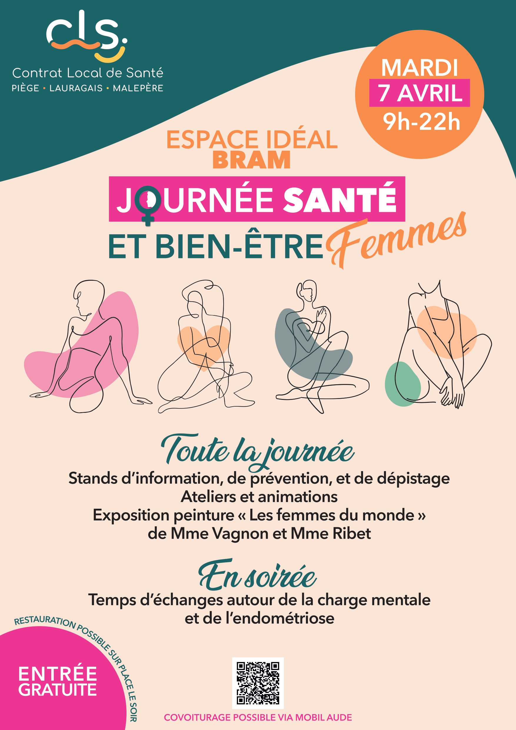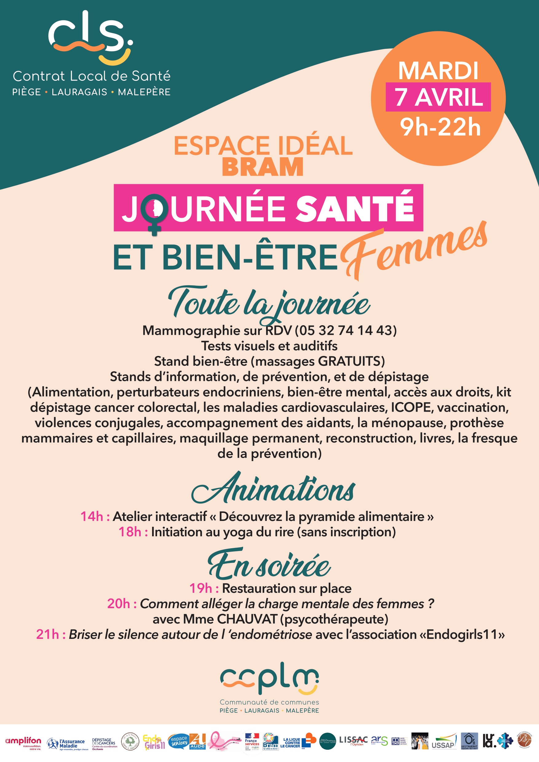 Le Contrat Local de Santé Piège – Lauragais – Malepère organise une Journée Santé et Bien-être dédiée aux femmes, le mardi 7 avril, de 9h à 22h, à l’Espace Idéal à Bram.