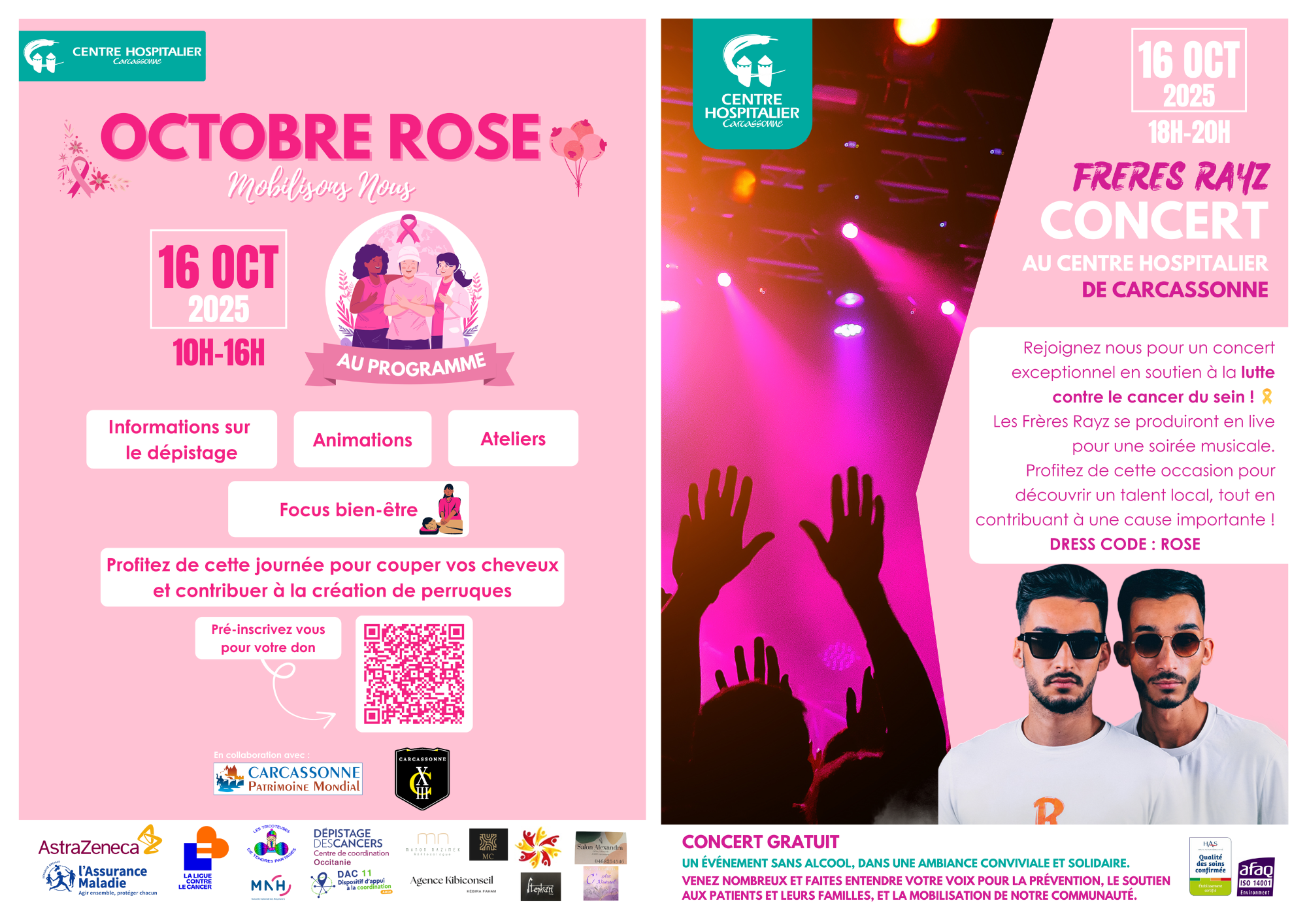 La journée se clôturera par un concert gratuit des Frères Rayz de 18h à 20h au Centre Hospitalier, en soutien à la lutte contre le cancer du sein.