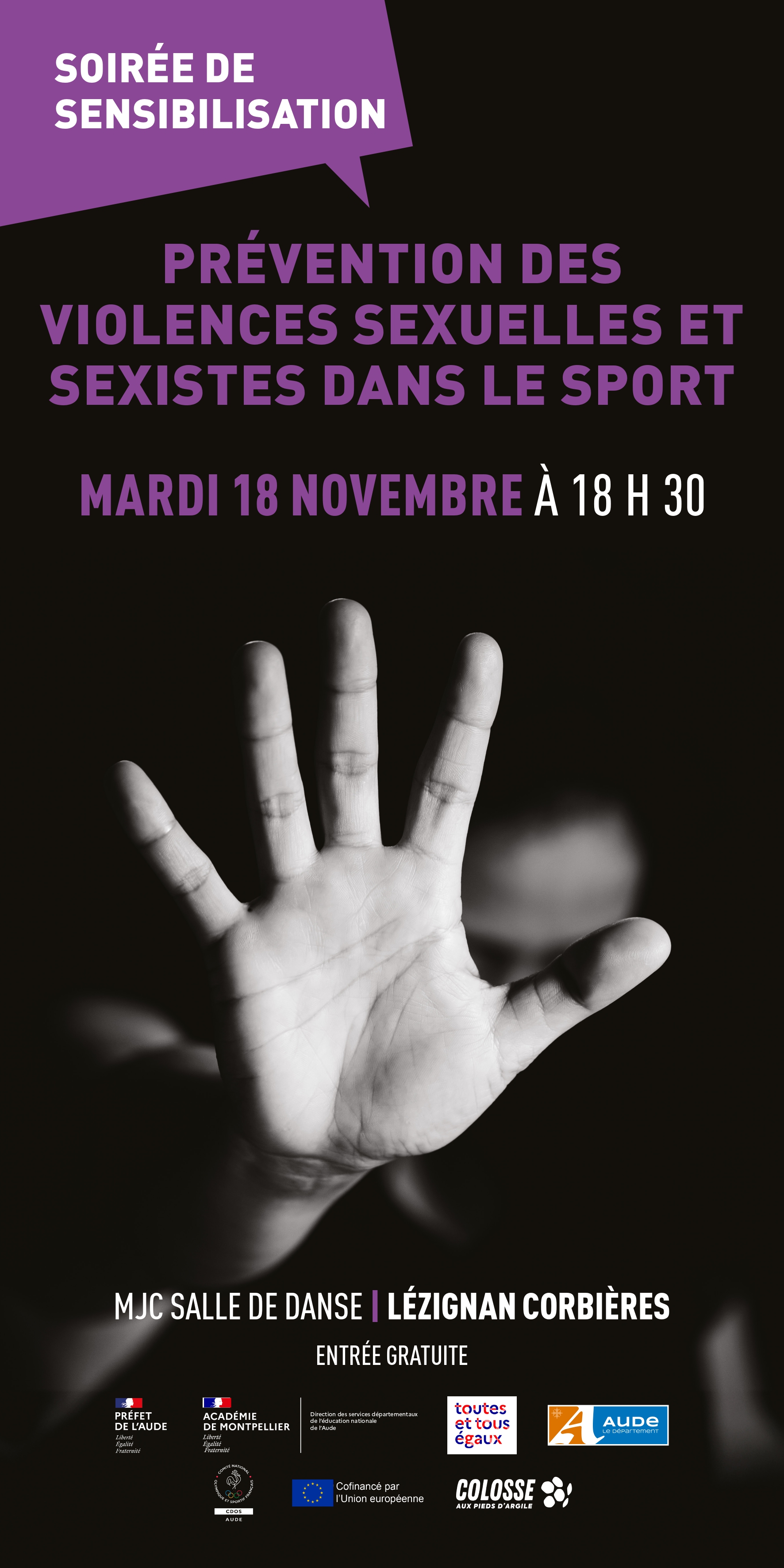 Le Conseil départemental de l'Aude, la Préfecture de l'Aude et le Comité départemental olympique et sportif ont le plaisir d'annoncer une soirée de sensibilisation sur un sujet crucial : la prévention des violences sexuelles et sexistes dans le sport. Cette initiative vise à renforcer les bonnes pratiques et à sensibiliser les acteurs du milieu sportif à la nécessité de protéger les jeunes et d'assurer un environnement sain et respectueux dans les clubs et associations sportives.